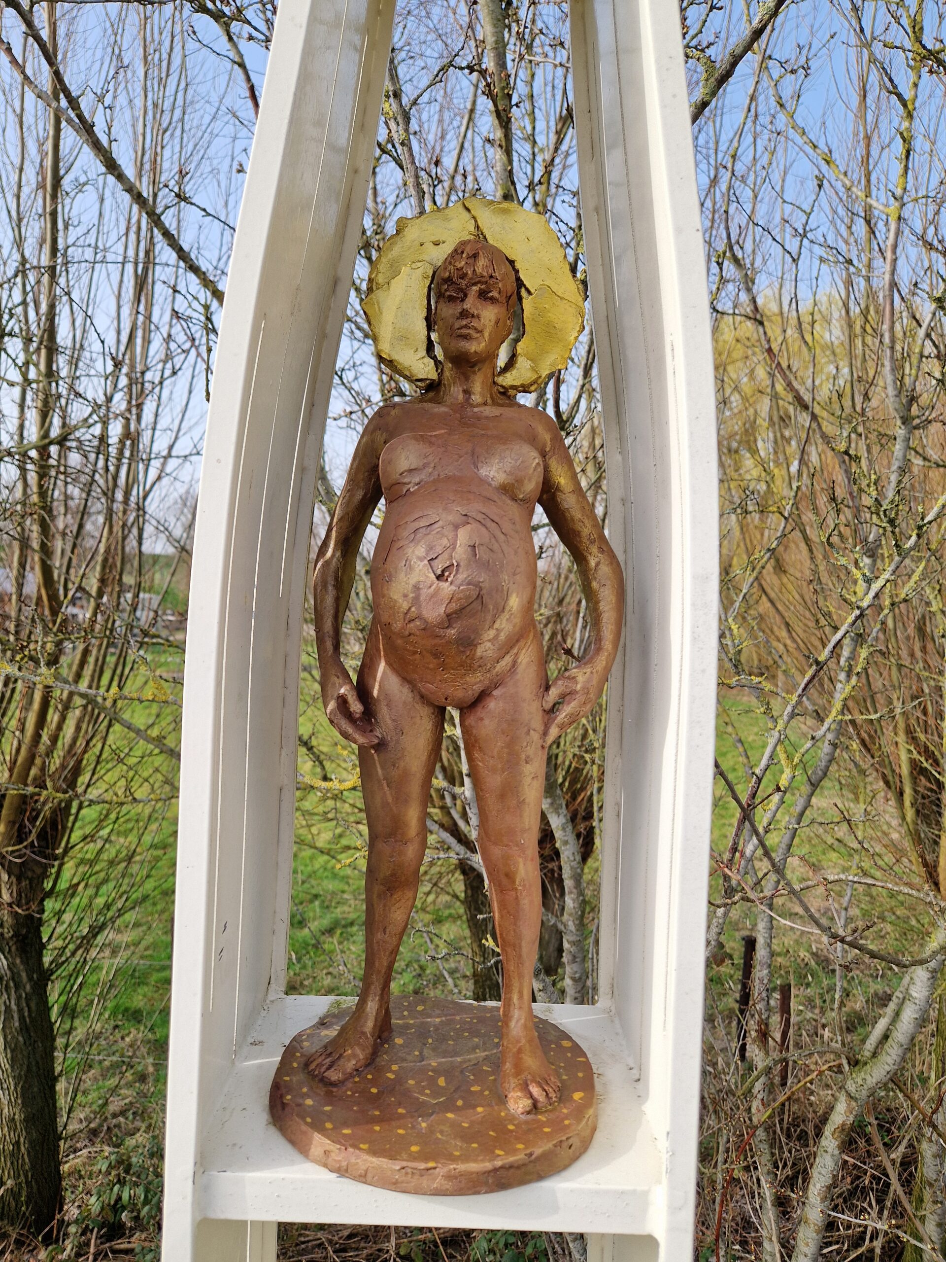 “Mariakapel” is de uitbeelding van een zwangere vrouw in een kapel, wier hoofd is gesierd met een aureool.