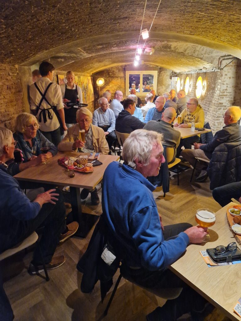 De afsluiting van de middag vond weer plaats in de kelder van het restaurant met de nodige versnaperingen. De middag stond onder voortreffelijke leiding van Karin Resing, die ook de hele voorbereiding had verzorgd. Een mooi boeket bloemen van het bestuur was dan ook meer dan op zijn plaats.