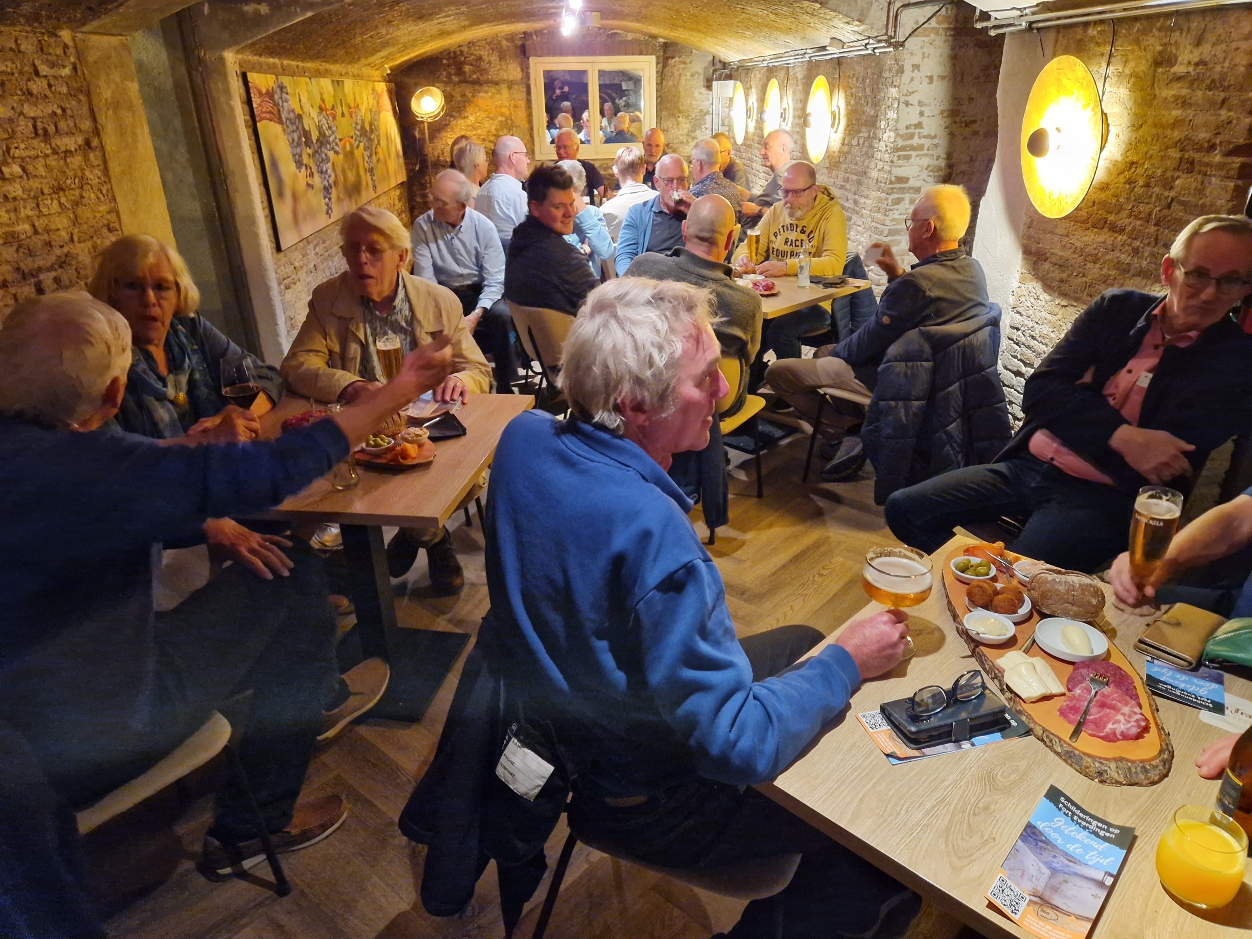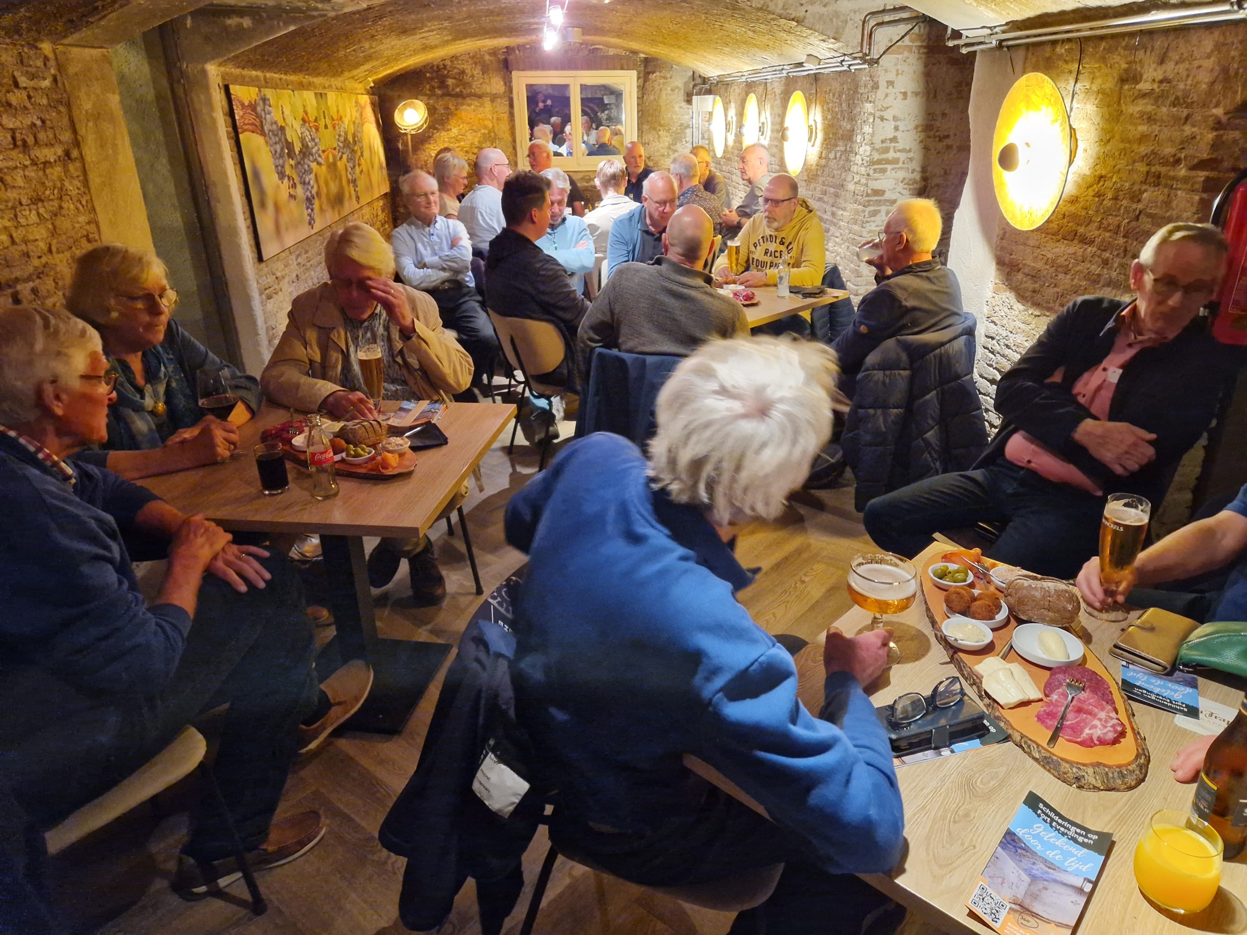 De afsluiting van de middag vond weer plaats in de kelder van het restaurant met de nodige versnaperingen. De middag stond onder voortreffelijke leiding van Karin Resing, die ook de hele voorbereiding had verzorgd. Een mooi boeket bloemen van het bestuur was dan ook meer dan op zijn plaats.